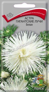 Однолетник. Густомахровая игольчатая астра. Сочетание изящества и впечатляющего размера – новая серия астр «Гигантские лучи». Соцветия крупные (12 см), махровые, очень изящные,собраны из скрученных в трубочки ярких лепестков. Одно растение дает до 14 цветоносов. Цветение раннее, обильное и продолжительное. Форма, размер и качество цветов прекрасно подходят для срезки. Растение светолюбивое, холодостойкое (может выносить заморозки до -3-4 °С). Предпочитает рыхлые питательные почвы. В засушливый период нуждается в поливе. Уход обычный – прополки, аккуратное рыхление, 2-3 подкормки минеральными удобрениями. Семена сеют в конце марта-начале апреля. Всходы появляются на 7-14 день. При появлении первого настоящего листа сеянцы пикируют. Если подсемядольное колено у сеянцев сильно вытянулось, то при пикировке их можно заглубить почти до семядольных листочков. В открытый грунт рассаду можно высаживать с середины мая. Возможен подзимний посев в грунт. В озеленении астры применяются очень